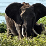 We came across a small herd of elephants that came exceedingly close to our jeep. Gibson kept backing up to give the bull some space. We knew, if he wanted to, he could tip our vehicle over. But, he eventually just crossed the road for more yummy branches and leaves.
